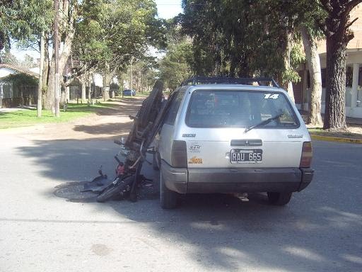 San Bernardo: Hace instantes (cerca de las 10 hs) se produjo un violento choque entre una mocicleta y una Duna Rural Gris en la intersección de las calles Tucuman y Joaquin V. Gonzalez. Dada la violencia del mismo tuvo que ser trasladada de urgencia al hospital de Mar de Ajó, una persona de sexo masculino, con politraumatismos. Segun testigos presenciales en la moto se trasladaban dos personas, mientras que el auto era conducido por una sola del sexo masculino.